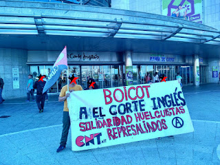 El pasado viernes la CNT-AIT de Cádiz realizó una concentración a las puertas del centro de EL Corte Inglés de la capital gaditana, en solidaridad con lxs compañerxs encausadxs en Barcelona en la pasada huelga general de marzo de 2012.