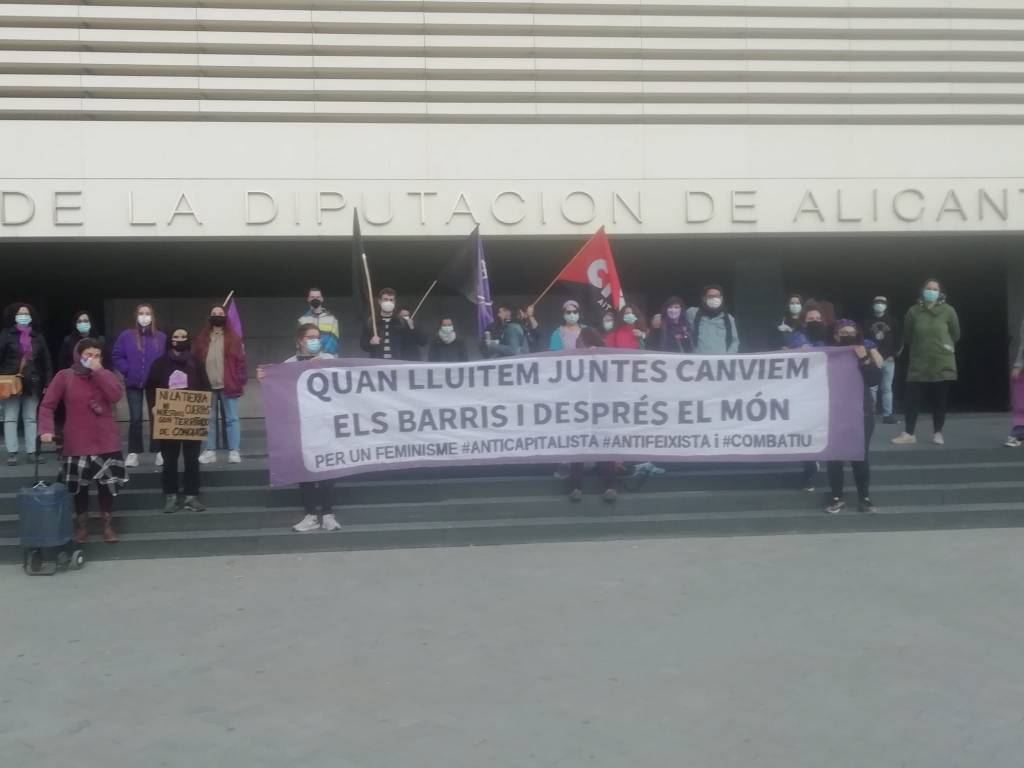 Este 8 de Marzo de 2021, el sindicato de la CNT-AIT de Alicante ha convocado una concentración en el Paseo Campoamor donde se ha reivindicado el día Internacional de la Mujer Trabajadora como un día de lucha Anarcofeminista, Transfeminista, Anticolonial, Antirracista y Anticapitalista.