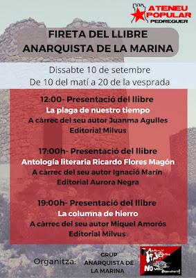 Cartellàs el que han fet les companyes del Ateneu Popular de Pedreguer amb la programació de la #FLAM la Fireta del Llibre Anarquista de La Marina.
