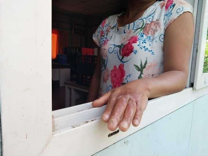 The fisherman couple has earned 400 kyats for 100 tiny shrimps in their trade with the entrepreneurs of lobster livestock. Win War Hlaing used to work in the industrial field since her late teenager age. She worked for two garment factories in Shwe Phyi Thar industrial zone in Yangon. In 2019, she got an accident in her fingers of right hand while working for HuaSheng factory of GTIG group. Because of the accident, her four fingers except the thumb cannot move well anymore. She was working to produce the products of Primark.