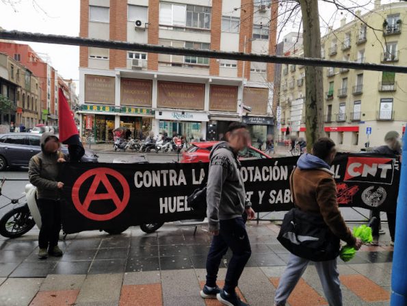 Este sábado 22 de marzo, la CNT-AIT de Madrid volvió a salir a la calle en solidaridad con el Sindicato de Badalona, quienes llevan tiempo luchando en un conflicto sindical generado por la empresa abusadora e hipócrita Inditex, propiedad de la “famiglia” Ortega, más otros directivos, inversores y accionistas sin escrúpulos.