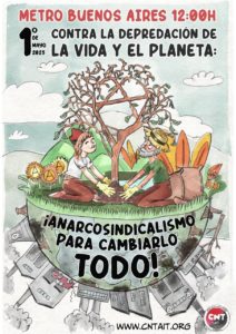 Por un 1º de mayo contra la depredación del planeta y de nuestras vidas. Trabajador/a: únete a CNT-AIT. Juntas, entre iguales, podemos cambiarlo todo.