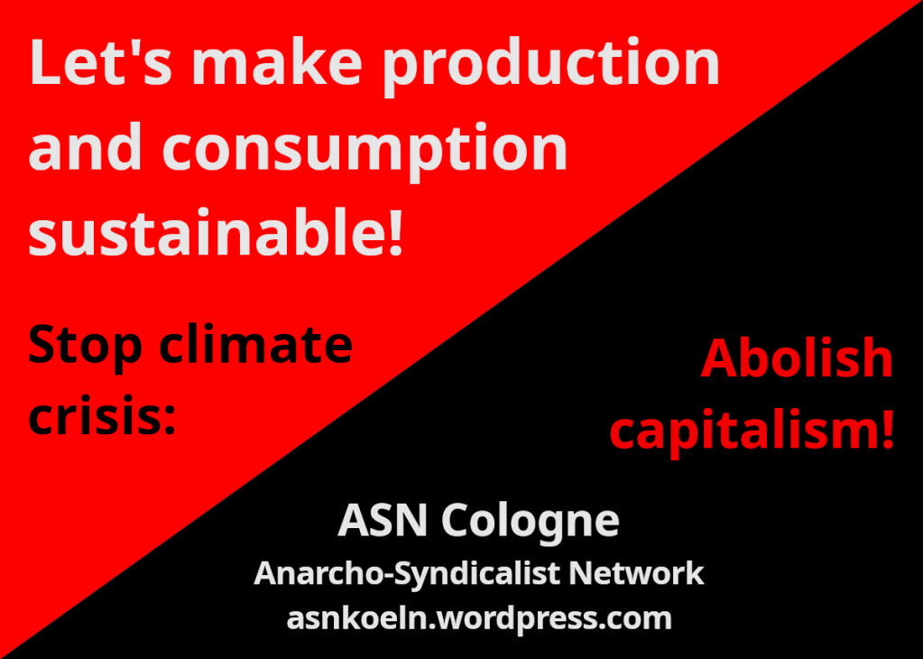 Here in Europe this means organizing rank-and-file resistance to enviromental destruction and by supporting societies in the most endangered regions of the planet. Every tenth of a degree of warming that we might avoid can help to stop this catastrophic „progress“. But the socio-ecological transformation should not lead to green-washed capitalist exploitation. Through autonomous workplace struggles for a sustainable transformation of all enterprises we take some steps towards global climate justice.