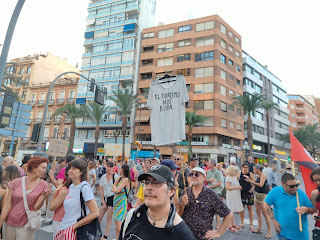 En la tarde del 25 julio asistimos compañerxs de la CNT-AIT Alacant y CNT-AIT Vinalopó a la manifestación: ALACANT NO ESTÀ EN VENDA. Convocada por el movimiento “Alicante donde vas”. Este movimiento contactó con nuestro Sindicato para invitarnos a dicha manifestación. El punto de partida era la librería 80 Mons y hasta el Postiguet.