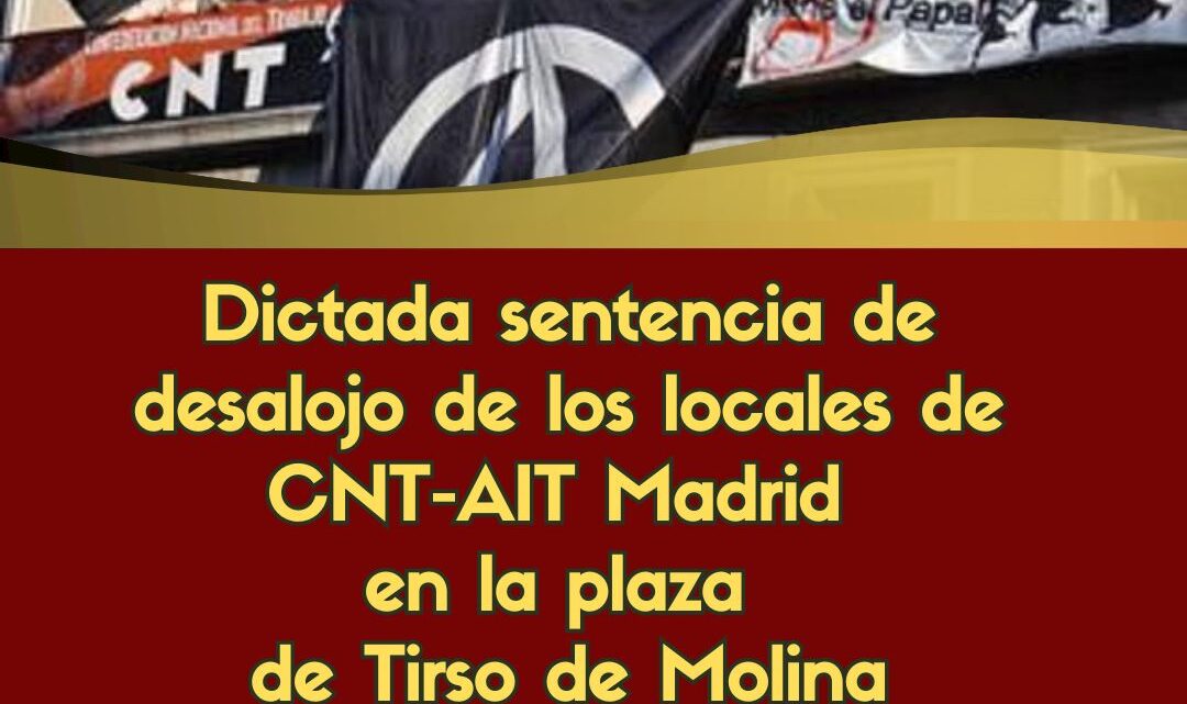¡URGENTE! La semana pasada nos ha sido notificado el resultado de la demanda interpuesta por la CNT-CIT contra la Federación Local de Madrid de la CNT-AIT: nos dan un mes para desalojar voluntariamente los históricos locales de Tirso de Molina.