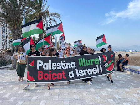 La marcha recorrió parte del paseo de la playa de San Juan que en esos momentos se encontraba llena de bañistas. Bajo su mirada de sorpresa y quizás resignación, solidaridad o ambas, se alzaron las banderas del pueblo palestino pidiendo su libertad al grito de “Boikot a Israel” “Viva Palestina libre” “No es una guerra, es un genocidio” “Israel asesina, Europa patrocina”.