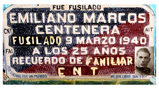 El 15 de septiembre de 1913 nace en Guadalajara (Castilla, España) el anarcosindicalista Emiliano Marcos Centenera. Sus padres se llamaban Gregorio Urbano Marcos Córdoba y Saturnina Centenera Camarma, y tuvo tres hermanos (Canuto Pedro, Ángel Cristóbal y Mariano). Se ganaba la vida haciendo de cerrajero y fue uno de los máximos impulsores de la Confederación Nacional del Trabajo (CNT) en Guadalajara.