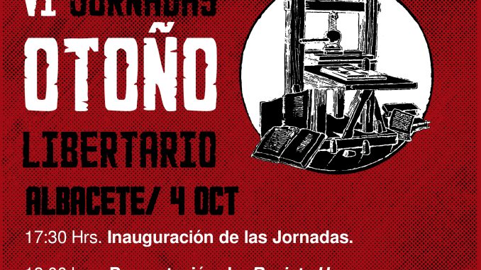 Las actividades comenzarán el próximo día 4 de octubre a las 17:30 hrs. en Albacete, en el local de la CNT-AIT, se inaugurarán las Jornadas de Otoño Libertario. Al mismo tiempo se dará comienzo a las 18:00 hrs. con la presentación de dos proyectos editoriales.