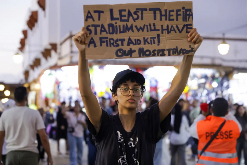 Oui, pendant que le régime brutal et corrompu construit des stades pour accueillir la Coupe du monde 2030 et d’autres jeux et se consacre au prestige et spectacle de la bourgeoisie, et pendant qu’il dépense des fortunes pour redorer son image auprès de ses maîtres du grand capital international et de l’impérialisme, les hôpitaux sont des mouroirs, car ils manquent de médecins, de personnel médical et paramédical, de matériel, de médicaments, et de tout le nécessaire pour assurer des soins de qualité, et de la même manière, les écoles croulent sous le nombre d’élèves, avec des enseignants qui sont sous-payés et méprisés, et des familles qui doivent se débrouiller seules.