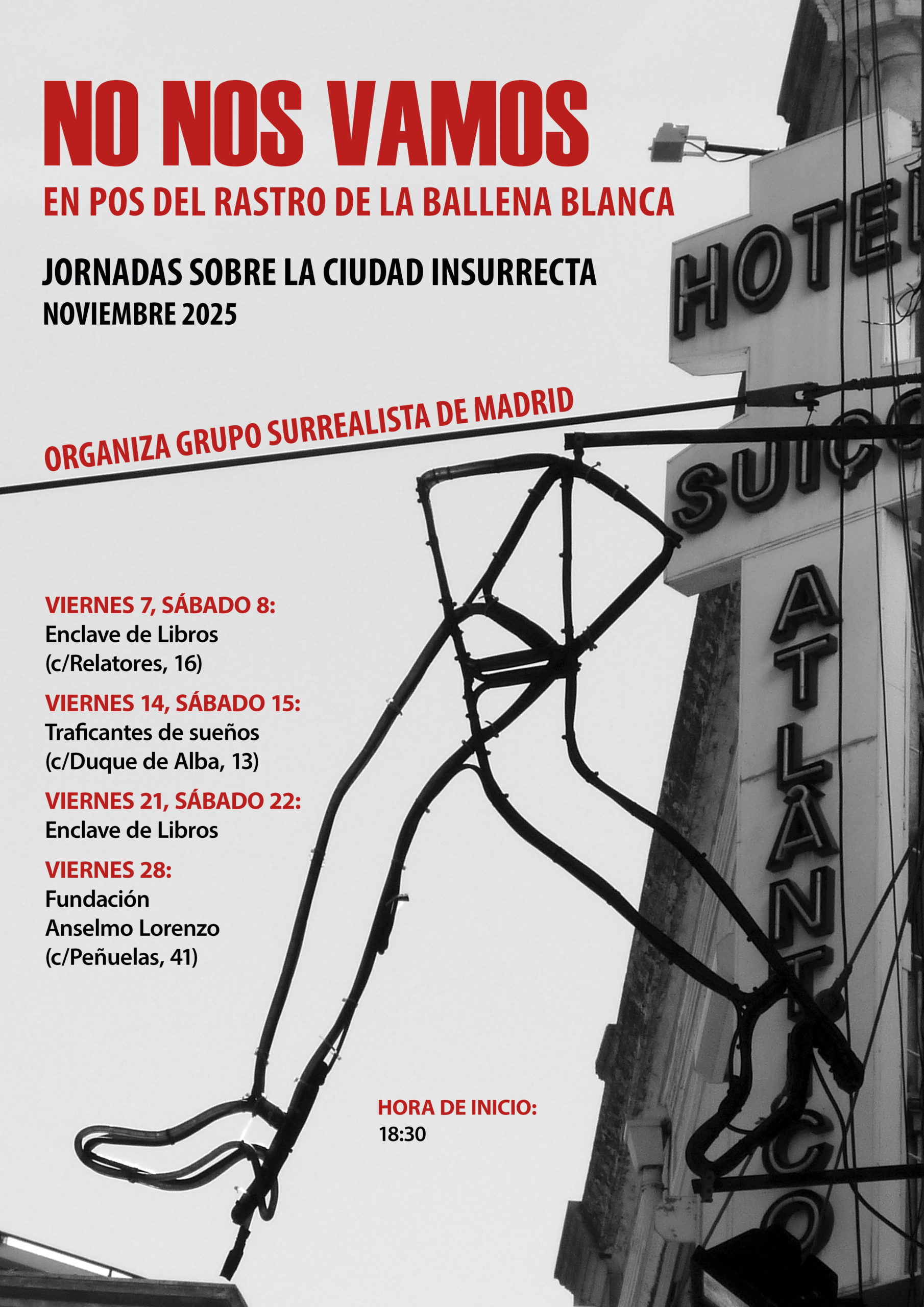 Por todo ello querríamos investigar y compartir las acciones, juegos e intervenciones, así como los síntomas, testimonios o premoniciones, del derecho a la ciudad, del deseo de ciudad. Intervenciones, juegos y acciones que aun partiendo de la conciencia de la crisis casi terminal de la ciudad, se resisten y niegan a sabiendas tal diagnóstico en tanto autoprofecía fatalista, en cuanto determinismo nihilista. A sabiendas: porque buscan y encuentran los rastros de la Ballena Blanca, de la ciudad rediviva que pugna por reemerger. Y nuestra vida con ella.