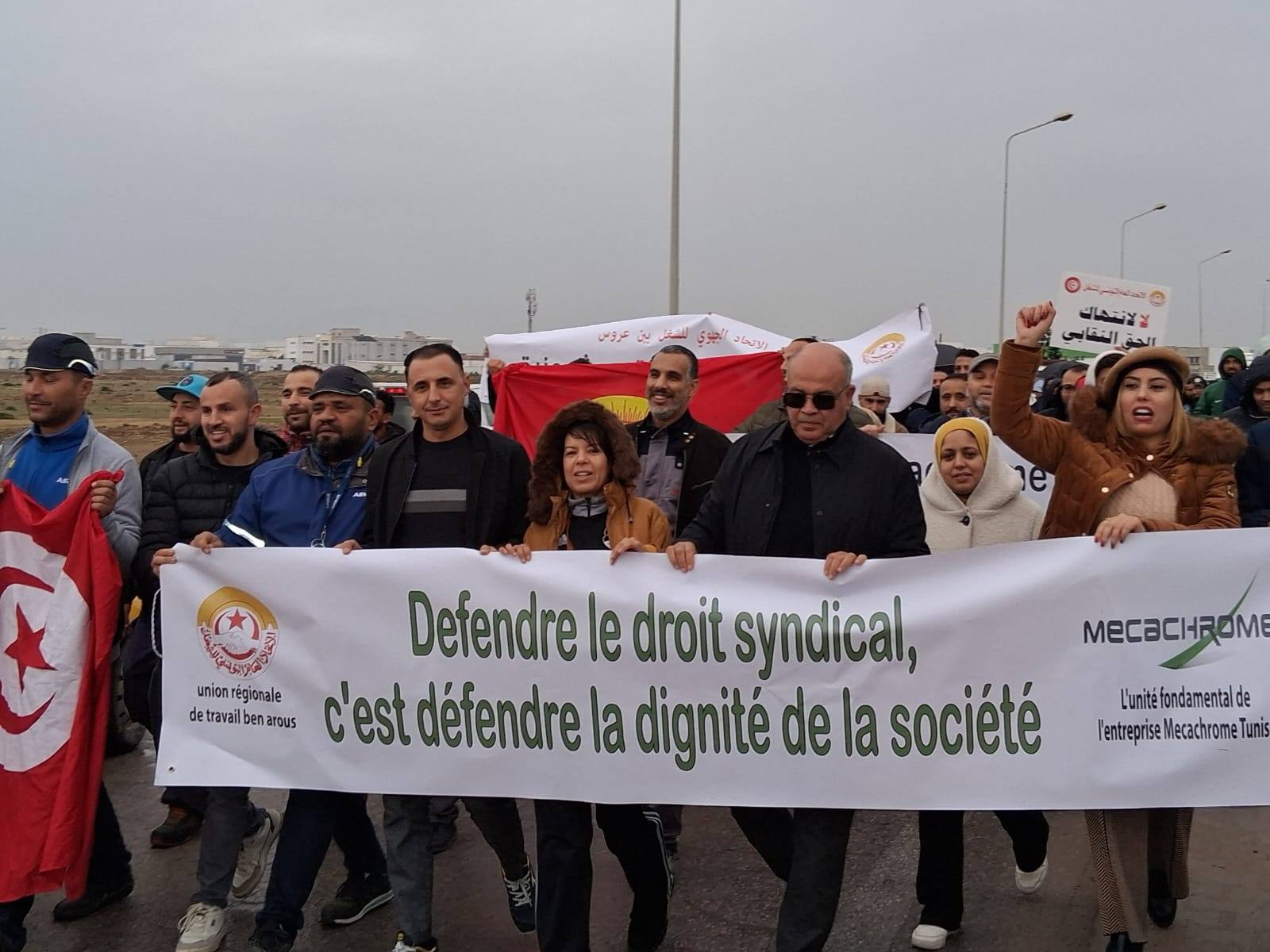 La lutte des ouvriers de Mécachrome en Tunisie s’inscrit bien dans le mouvement ouvrier international, avec la solidarité des ouvriers de Mécachrome en France, et elle s’inscrit aussi dans l’histoire culturelle de ce mouvement, avec ce rap de soutien qui a été diffusé sur les réseaux sociaux et que nous reprennons ici, pour qu’il soit chanté à plein poumons en face des patrons chaque fois que possible :