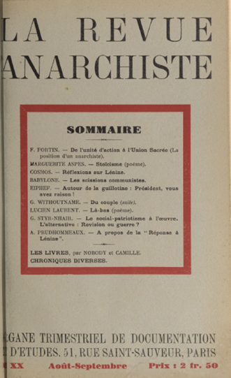 La Revue Anarchiste, Août – Septembre 1934, numéro 20