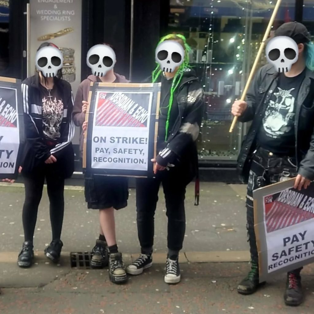 All of the non-managerial staff at Obsidian and Echo Body Piercing in Belfast have been in dispute with their employer since the handing in of our demand letter on the 31st of January.